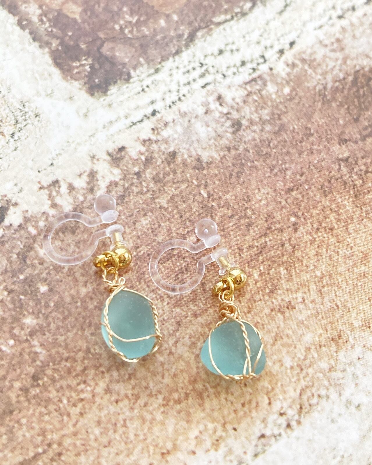 小さなシーグラスの輝きを生かすように、ワイヤーで巻きました。